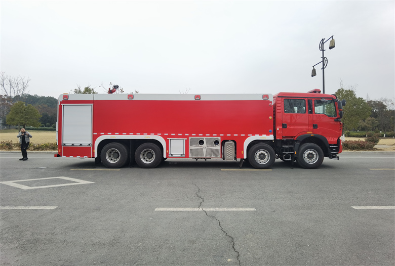 重汽豪沃25噸水罐消防車標(biāo)準(zhǔn)配置:重汽豪沃25噸水罐消防車水罐采用框架焊接,罐體內(nèi)設(shè)置縱、橫防蕩板,以減少車輛行駛過程中罐內(nèi)水對(duì)罐體的沖擊;罐體前后壁板折有梯形折筋,使罐體具有足夠的強(qiáng)度、剛度。罐頂設(shè)快速開啟式人孔,方便維修人員進(jìn)出。罐內(nèi)設(shè)有防止水泵吸水形成旋渦從而影響流量的裝置和濾網(wǎng)。罐內(nèi)設(shè)有不銹鋼浮球式液位指示器,可通過儀表板上液位表顯示罐內(nèi)滅火劑的容量;罐底設(shè)有帶球閥的排污口。罐體設(shè)有1個(gè)76mm溢流管,車廂兩邊各1個(gè)76mm注入口,便于其他車輛供水加液之用。