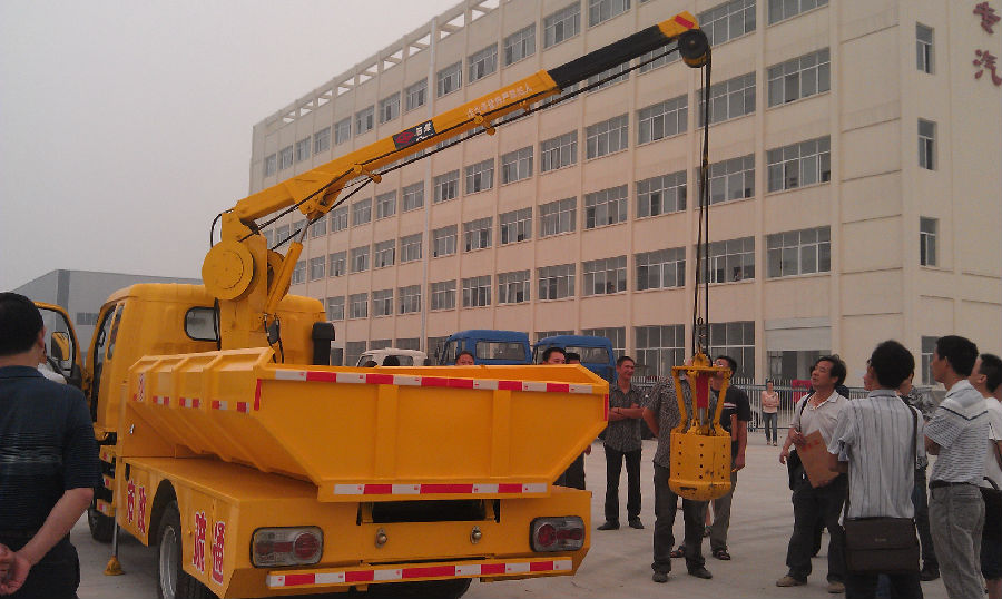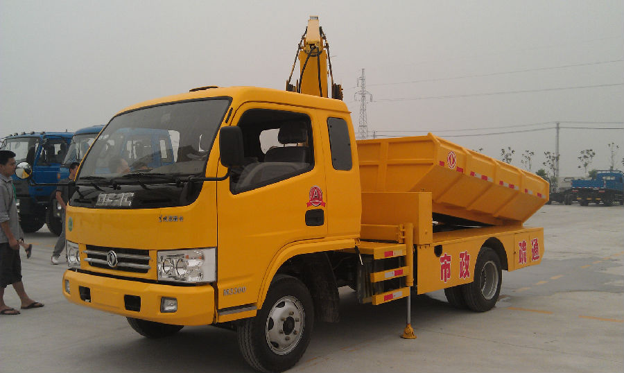 泥抓斗車是用于清理城市下水道沙井中污泥的專用車輛,采用國三標準躍進、慶鈴和國四福田歐馬可三種底盤加裝隨車起重機、污泥廂、工具箱、水箱等改裝而成。該車配備專用污泥抓斗,工作時,可方便地從下水道中抓取污泥,放到車上的污泥廂內,然后轉運送到污泥處理地點。具有自卸功能的污泥車廂能方便地將污泥倒下,完成清理及轉運工作,工作過程中路面始終保持清潔。